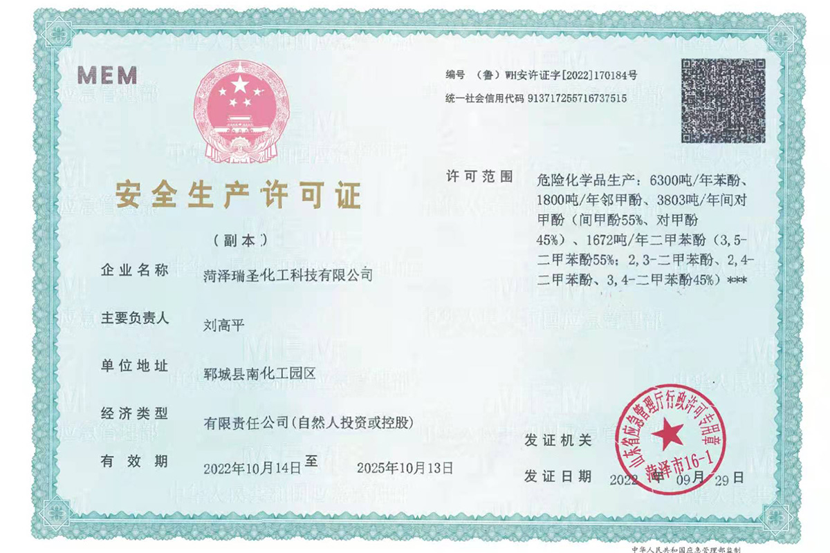 菏澤瑞圣化工科技有限公司是國(guó)內(nèi)酚類(lèi)產(chǎn)品的生產(chǎn)企業(yè)。公司現(xiàn)有年加工粗酚20000萬(wàn)噸的生產(chǎn)裝置及能力,可生產(chǎn)苯酚、鄰甲酚、間對(duì)甲酚、二甲酚等產(chǎn)品。產(chǎn)品廣泛應(yīng)用于合成樹(shù)脂、香料、染料、絕緣材料、阻燃劑、農(nóng)藥、醫(yī)藥、中間體等精細(xì)化工領(lǐng)域。本公司以誠(chéng)為本,信譽(yù)保證,靠過(guò)硬的產(chǎn)品質(zhì)量和完善的服務(wù)贏(yíng)得了國(guó)內(nèi)外廣大用戶(hù)的贊譽(yù)。產(chǎn)品暢銷(xiāo)國(guó)內(nèi)二十多個(gè)省市地區(qū),并地打入了國(guó)際市場(chǎng),產(chǎn)品遠(yuǎn)銷(xiāo)意大利、巴西、印度、韓國(guó)、日本、臺(tái)灣等國(guó)家和地區(qū)。 公司坐落在菏澤市鄆城縣煤化工業(yè)園區(qū)。生產(chǎn)及檢測(cè)設(shè)備精湛,管理機(jī)制科學(xué),并擁有技術(shù)隊(duì)伍,產(chǎn)品質(zhì)量達(dá)到標(biāo)準(zhǔn)。 可靠的產(chǎn)品、可靠的質(zhì)量、可靠的信譽(yù)、完善的服務(wù)是我們的宗旨,我們將竭誠(chéng)與海內(nèi)外各界朋友精誠(chéng)合作,共圖發(fā)展,攜手共進(jìn),創(chuàng)造你我共同的未來(lái)。 企業(yè)的使命感與社會(huì)的責(zé)任感讓我們今天在此相逢 ,就讓我們攜起手來(lái),相互交流,為我國(guó)化工行業(yè)的發(fā)展,盡一份綿薄之力,為創(chuàng)建更美好的明天共同奮斗!